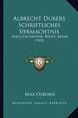 PDF Albrecht Durers Schriftliches Vermachtnis: Familienchronik, Briefe, Reime (1905) Download pdf epub djvu free download. Download Albrecht Durers Schriftliches Vermachtnis: Familienchronik, Briefe, Reime (1905) PDF Online free ebook pdf epub. Albrecht Durers Schriftliches Vermachtnis: Familienchronik, Briefe, Reime (1905) PDF ePub read online free book. Albrecht Durers Schriftliches Vermachtnis: Familienchronik, Briefe, Reime (1905) PDF cheap ebook for ...